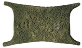 Curiosamente las primeras monedas en cobre o metal, notable avance en ese momento, eran simples lingotes de metal muy pesados (el de la ilustración medía 24 x 18 cm), a veces con la forma de una piel de buey , llamados “aes rude = as bruto, sin acuñar” y luego, tal vez en el siglo V a.C. acuñado con la figura impresa de un buey o toro (aes signatum). A veces aparece impresa la figura de un carnero o de un cerdo.